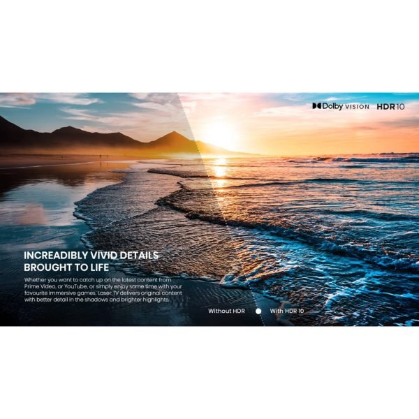 Unique design with great construction aesthetics making the Hisense Trichroma Laser TV more able to adapt to greater living space.