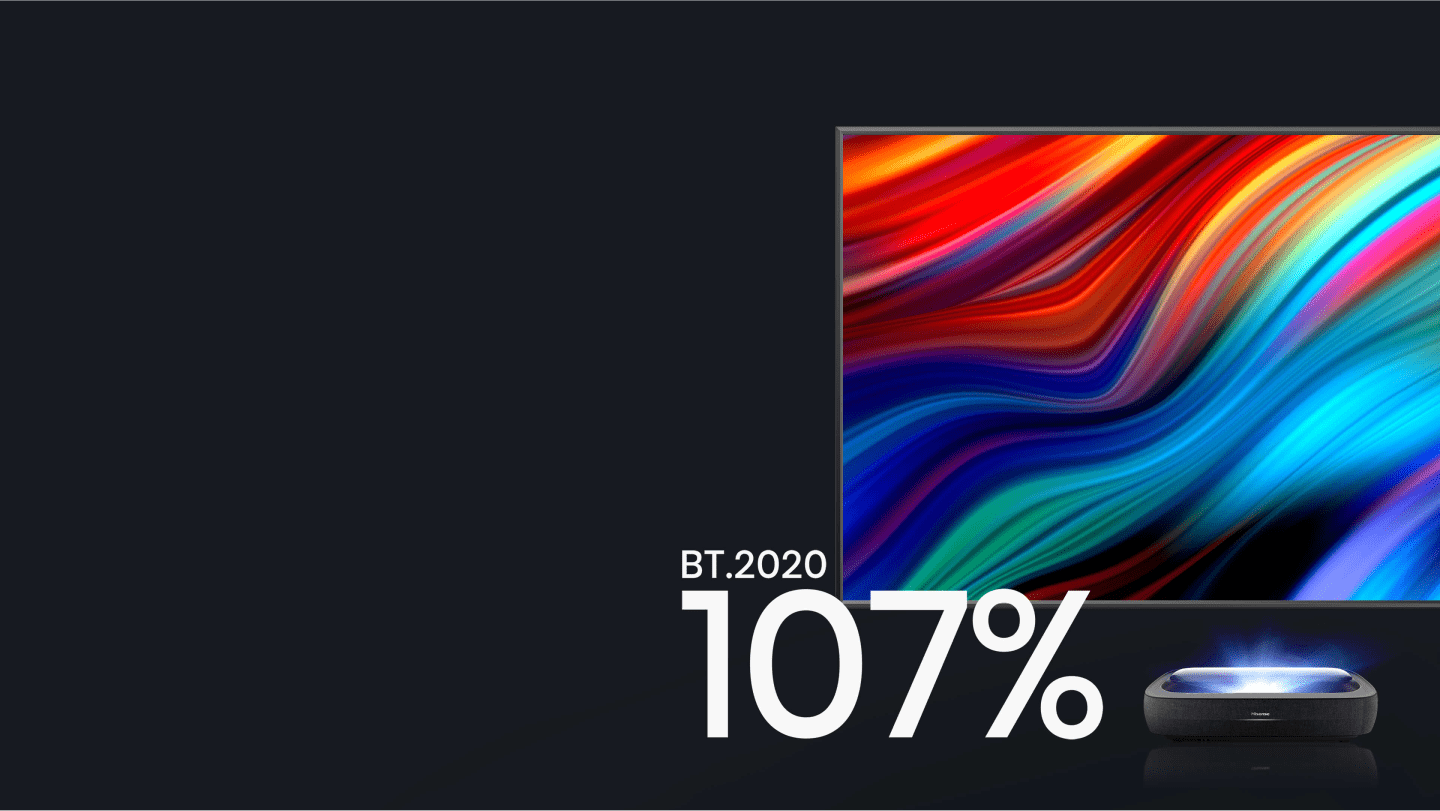 The top colour standard of the future of TV is BT.2020. The higher the colour gamut, the more colour the display shows. Hisense widened the colour gamut to 107% BT.2020, so when you watch on Trichroma Laser TV, the visuals will always exceed your expectations.
