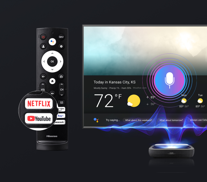 You can conveniently speak out to your Hisense TV remote at a distance of up to 3 meters or alternatively by pressing the voice command button.