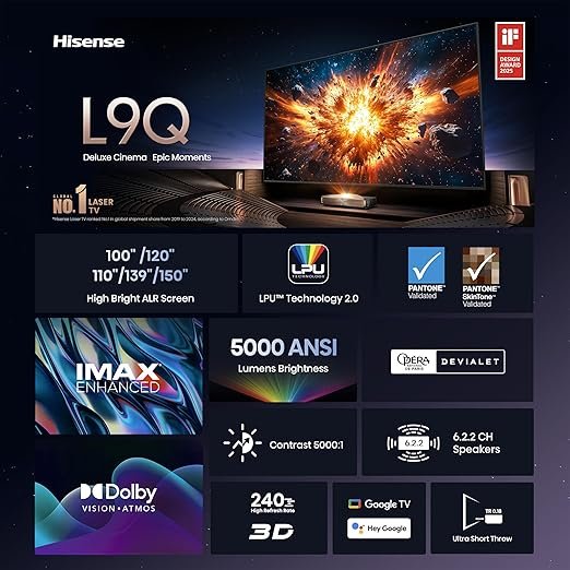 Experience lifelike visuals with advanced triple laser technology that covers 110% of the BT.2020 color space. Validated by Pantone and Pantone SkinTone, colors and skin tones appear natural and accurate. See every detail just as the creators intended.