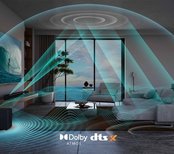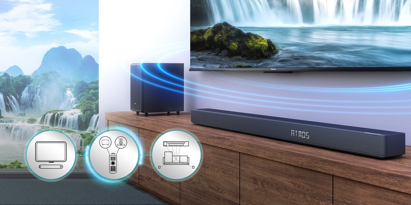 Al integrated technology, optimises the sound source from different media for the perfect listening experience. Or utilise the pre-set equalizer modes – Movie Mode, Music Mode, Night Mode, News Mode, Sports Mode, Game Mode and AI Mode.