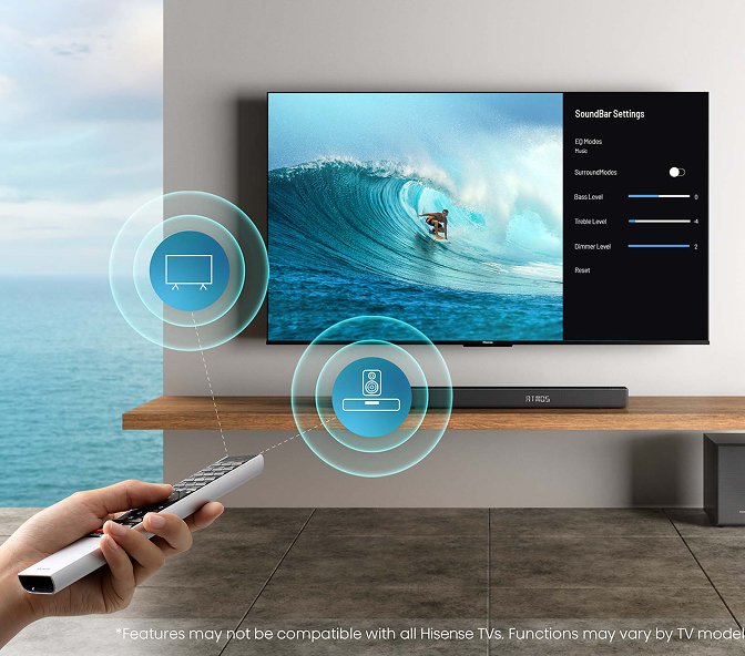 When paired with a compatible Hisense TV, EzPlay enables you to conveniently use your Hisense TV remote to control this Soundbar.