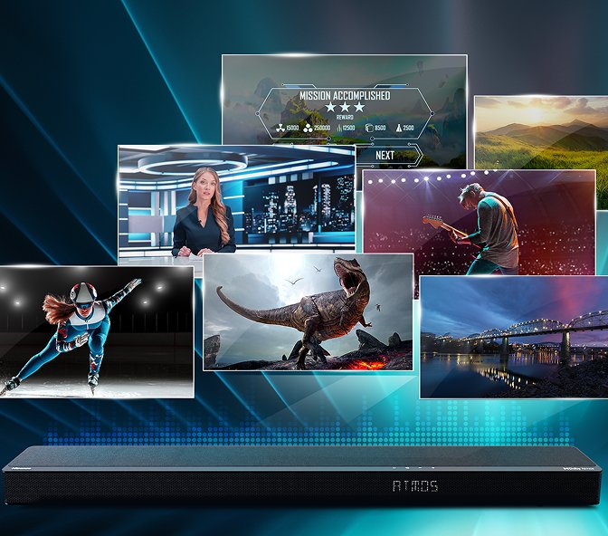Hear and feel more with DTS:X and Dolby Atmos surround sound audio.