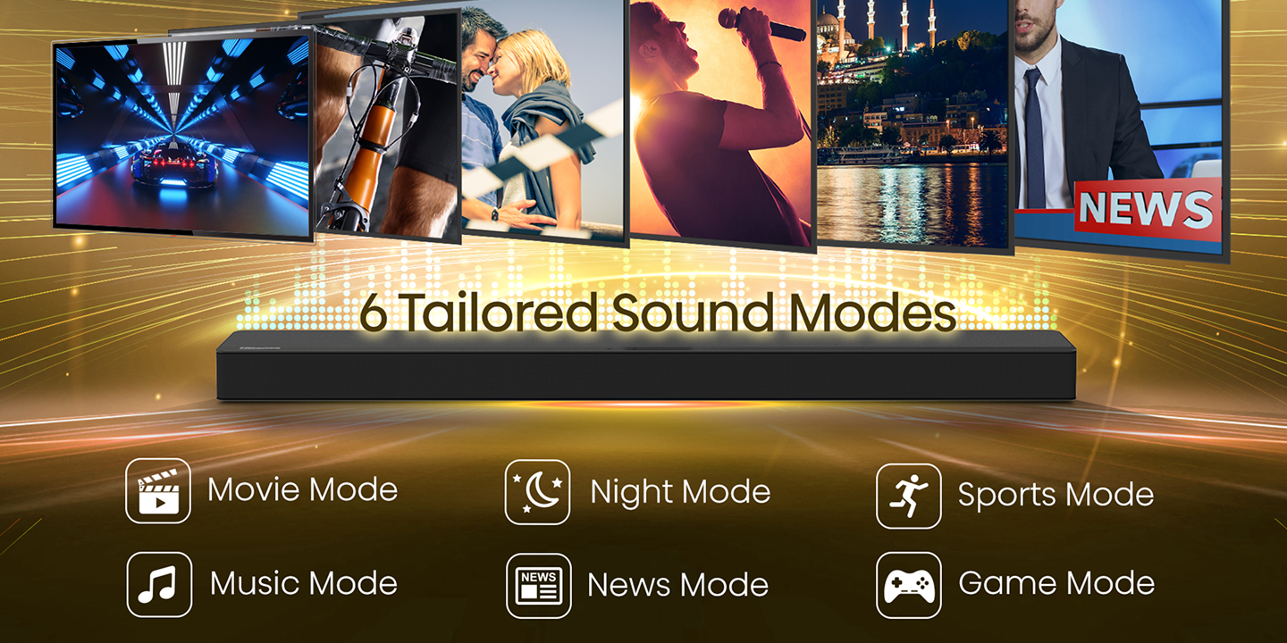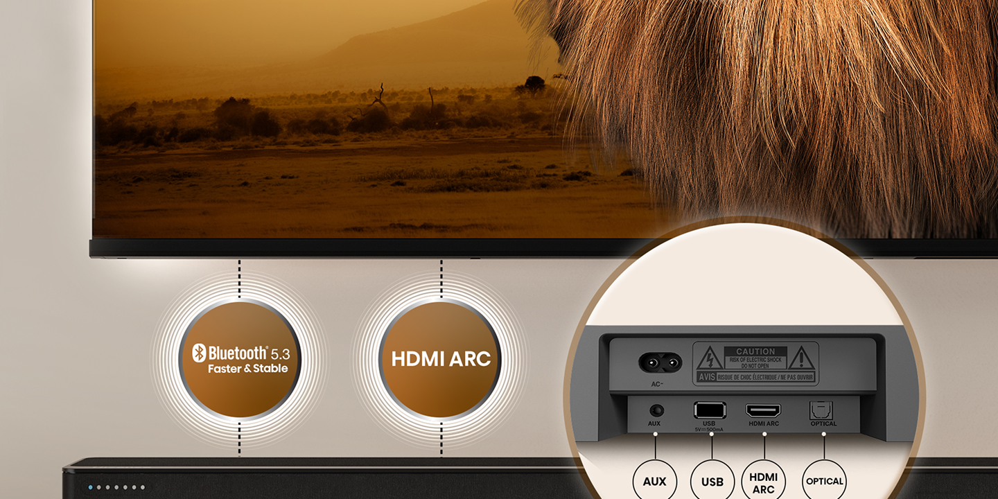 2 powerful speakers and a wireless subwoofer, erupting an impressive 240W max audio power to upgrade your TV sound instantly.